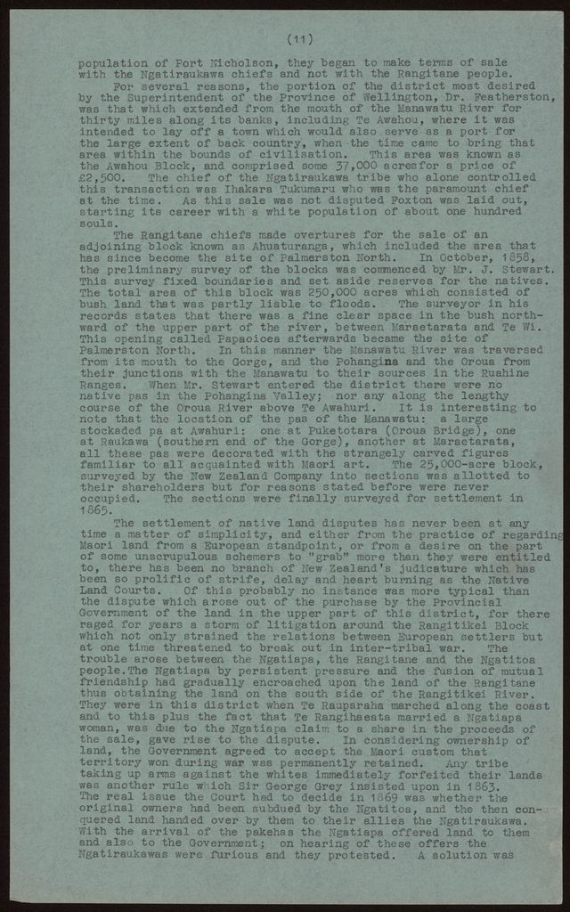 The history of the Manawatū outlined, followed by some newspaper cuttings and then images of Palmerston North from 1877 - 1927 and 1937.