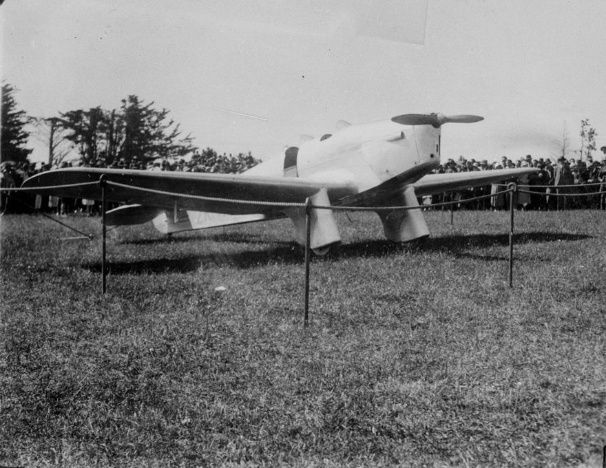 This Miles Hawk aircraft was flown from England to Australia in the 1934 Air Race. The pilots were Middle Districts Aero Club Chief Instuctor, Squadron Leader McGregor, and the Club Captain, H C Walker, from Palmerston North. They came fourth.
