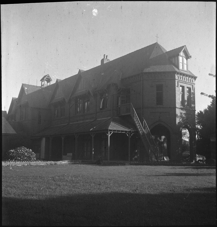 The Fitchett Street Convent was the third built for the Sisters of Mercy in Palmerston North. It was designed by Clere and Clere and built by Trevor Bros in 1925 -1926. It was orginally part of a complex of buildings, with two primary schools and a girls high school adjacent to it. The sisters moved out of the building to live in the community after the schools were closed, in 1982. The three storied, brick building was demolished by the Catholic Church in 1984. The decision to destroy the old convent provoked lengthy controversy. This photograph was taken just before demolition in May – June 1984.