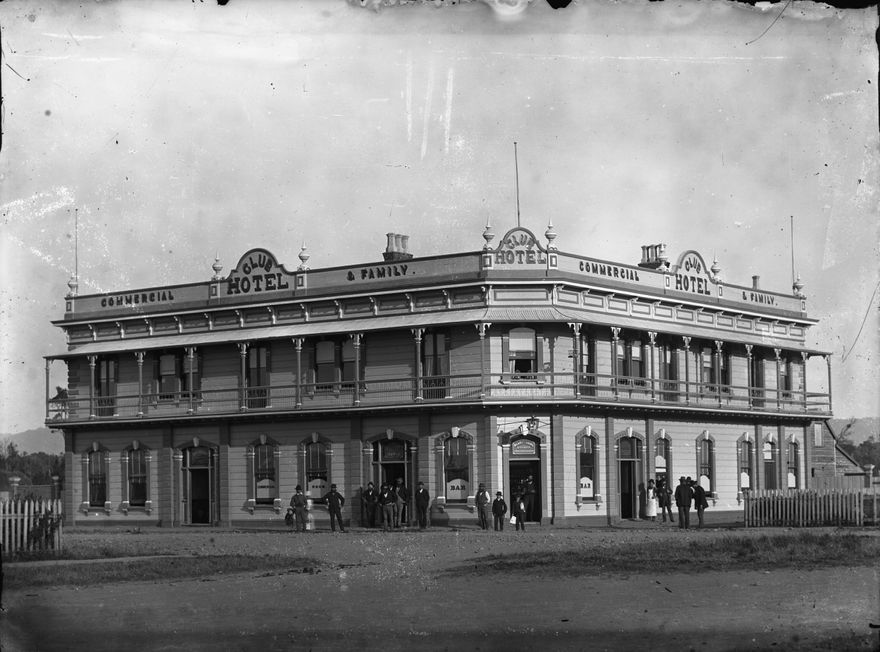 Established in Palmerston North in 1882, opposite the eastern corner of The Square and Church Street, by Percy Herman. A later wooden extension was built over the right of way on the right hand side, and in 1905 a brick building attached on the left, to comprise the 60 bedroom Tucker's Club Hotel. The buildings continued operating as the Club Hotel until 1977 when this wooden building, and its wooden extensions, were demolished to make way for the then PDC department store developments.