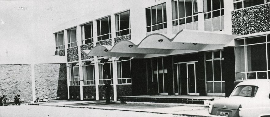 The entrance to the new Palmerston North Railway Station, which officially opened 21 October 1963. This photograph appeared in the Manawatu Evening Standard October 19, 1963.