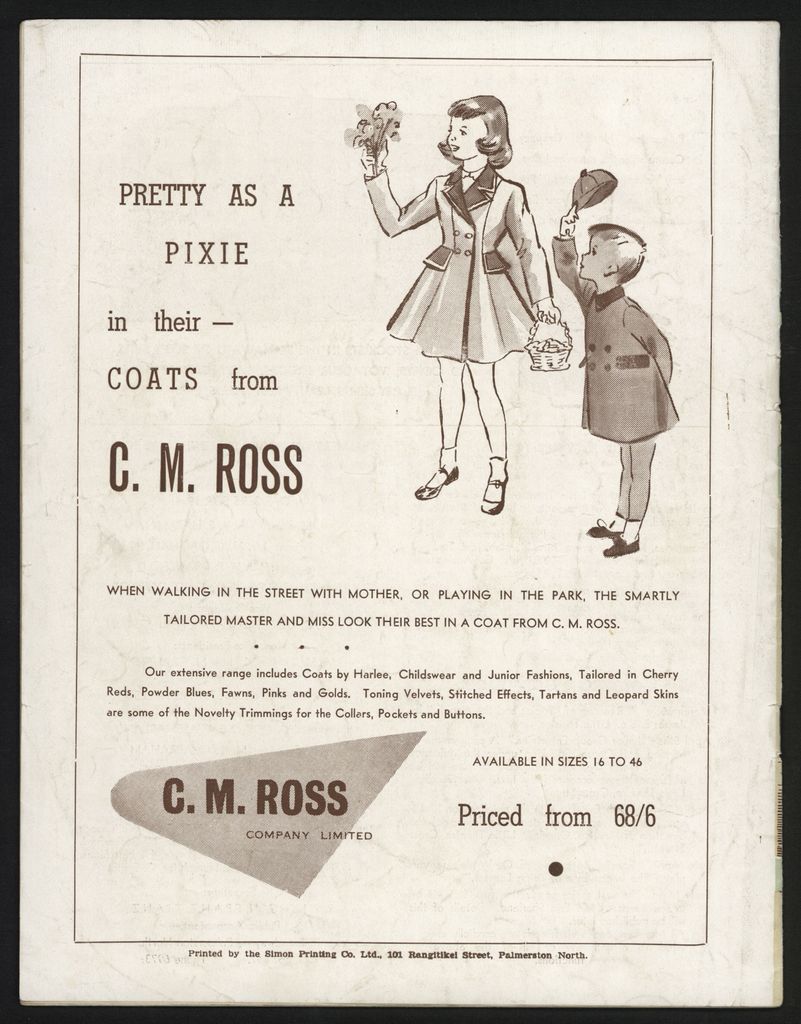 The cover of this booklet reads, "Sir J.M. Barrie's Immortal Peter Pan being the joint presentation by the Palmerston North Operatic Society (Inc.), the Manawatu Repertory Society (Inc.) [and] the Palmerston North Little Theatre Society (Inc.) in conjunction with the Palmerston North City Council on the occasion of the re-opening of the Opera House. Formal opening: Saturday, 19th March 1955. Season: 19th to 26th March, 1955 (inclusive)."