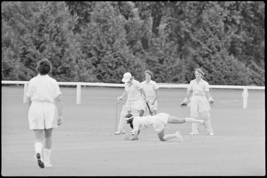 This image was taken (but not published) by the Evening Standard between the 27th and 29th of December 1980. It depicts a moment of action from the Hallyburton Johnstone Shield 2-day match between the Central Districts and North Shore women’s cricket teams. The match was drawn.