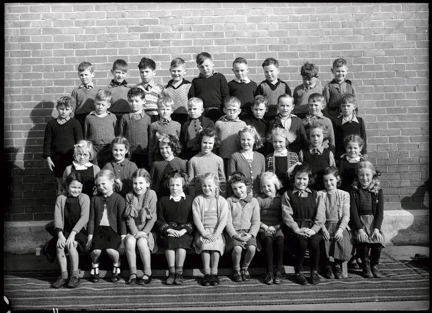A unidentified group of young pupils attending Central School. Central Normal began as Palmerston North's first school in 1872, in Princess Street. It shifted to become Campbell Street School in 1890. When it was outgrown a new school was opened in Featherston Street in 1921 and became known as Central Normal School.