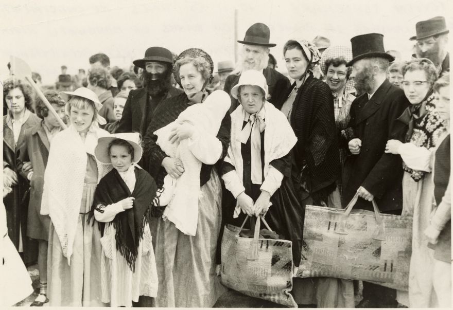 Men, women and children dress up for a re-enactment to commemorate the landing of pioneers on the banks of the Manawatu River. Mr Neil Hunt, black beard, portrays the first Presbyterian minister, The Reverend James Duncan. The original landing occurred because of the disaster of 1855, when an earthquake badly damaged the settlement of Paiaka. Consequently, the Anglican Community moved down river to Foxton or Te Awahou as it was called then. Foxton is located on the lower west coast of the North Island, in the Horowhenua District.