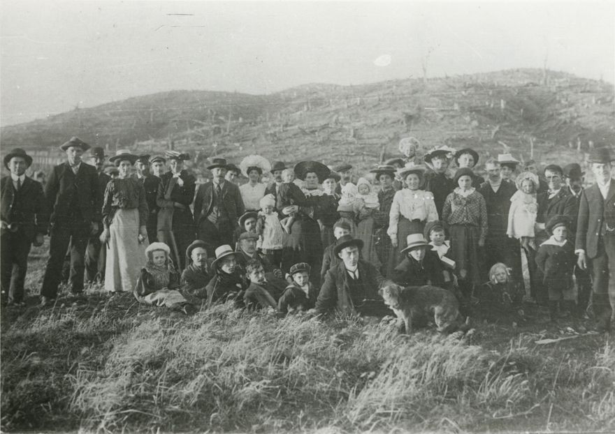 Employees and their families gathered for the annual McGregor Bros Mill picnic at Moturimu. Moturimu is situated at the Fitzhbert West hills, near Linton. There were three McGregor Brothers, John, James and David. John McGregor was the Post master from 1906 – 1911, and another was known as “Wire Rope McGregor’ for being able to splice long lengths of one inch wire rope together.