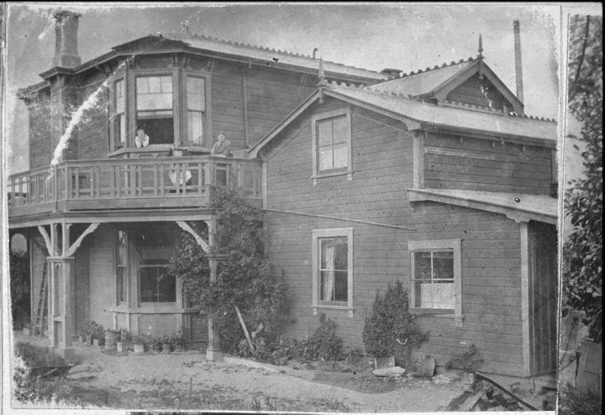 The house began as a cottage and was added onto at the front. The unusual finials on the roof may show Scandinavian links. The house is now demolished.it is believed to be the home of Alfred and Eliza Falkner of Kaiparoro, Wairarapa.