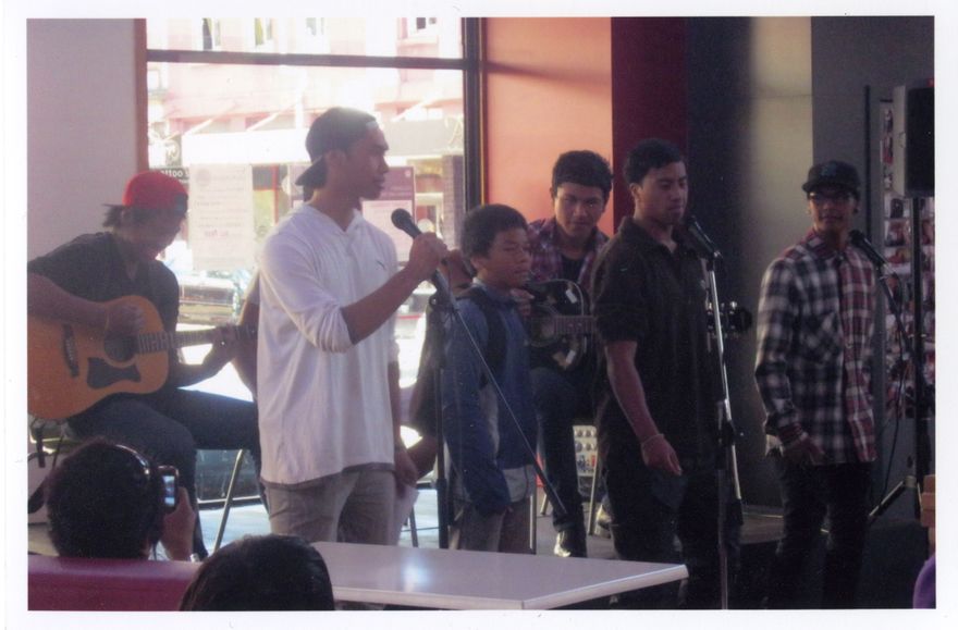 The "Hangi Boys" take part in an impromptu performance at Youth Space.