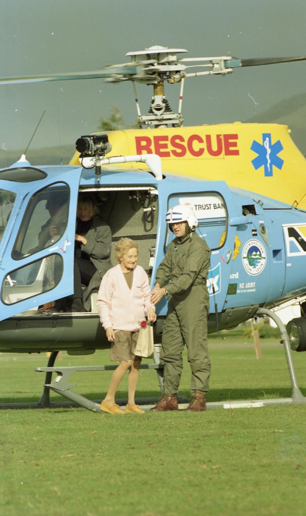 Madge Allsop arrives at Linton via Rescue Helicopter