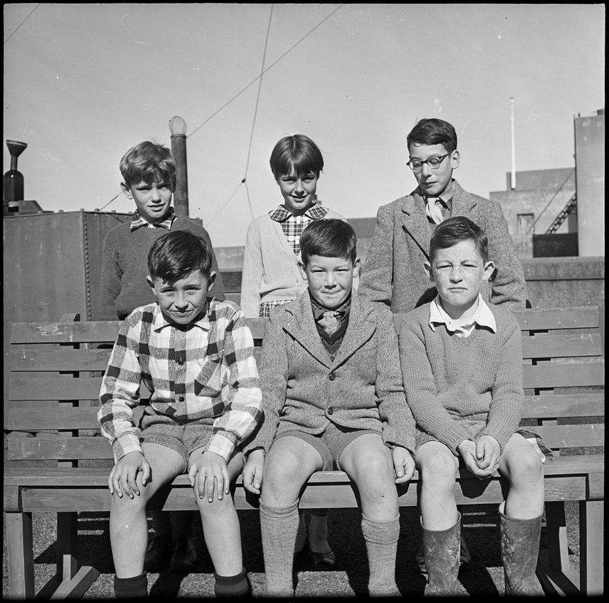 [A group of young people, 3 seated and 3 behind, are posing outside.]