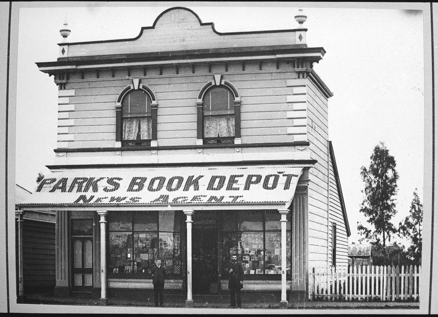 This building was Mr Park's first bookshop and was purchased by him in 1882. It stood between Church Street west and Main Street west. In 1884, Mr Park built larger premises alongside this building, which he occupied until c.1917.
