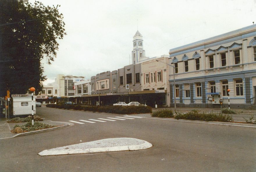 Part of the former Chief Post Office is on the right. In the background is the T&G Building on Broadway.