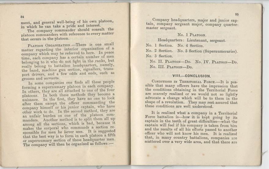 Special District Order No. 43/1915. By Colonel R. W. Tate, Commanding Wellington Military District. The subject of this paper is the four-company organization recently adopted for the infantry of the Regular Army, and which will shortly be also adopted for the Territorial Force. Originally this article was given as a lecture to the London Units of the Territorial Force, by Brevet-Major Hereward Wake, King's Royal Rifles.