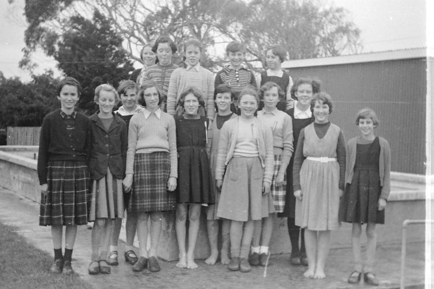 Carnarvon School, senior girls by the swimming pool, 1956.