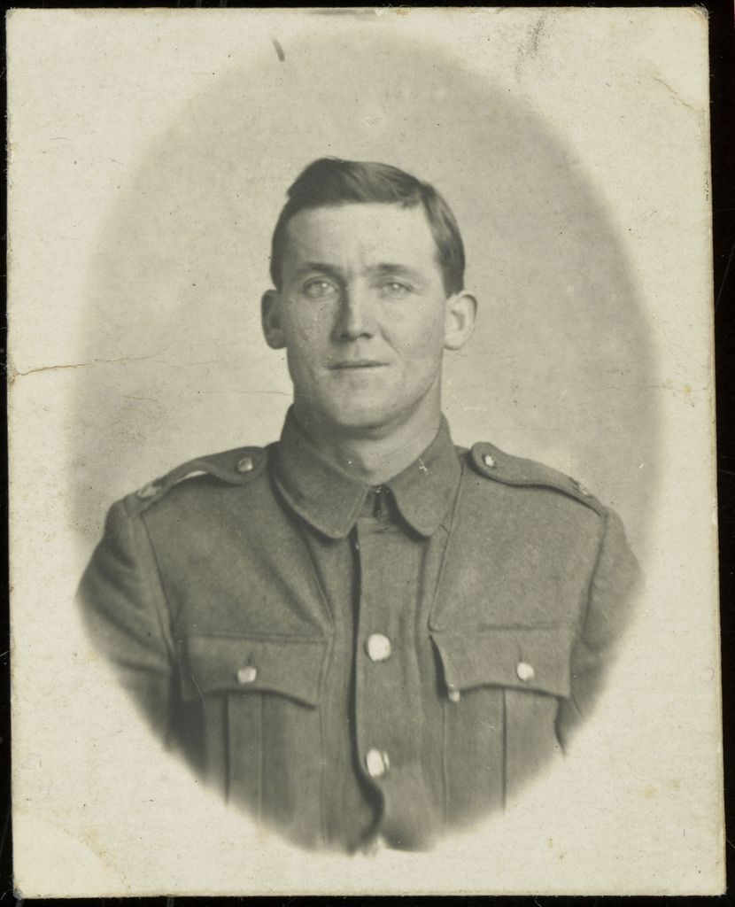 A headshot of an unidentified World War one soldier in uniform. Probably related to the Pike family.