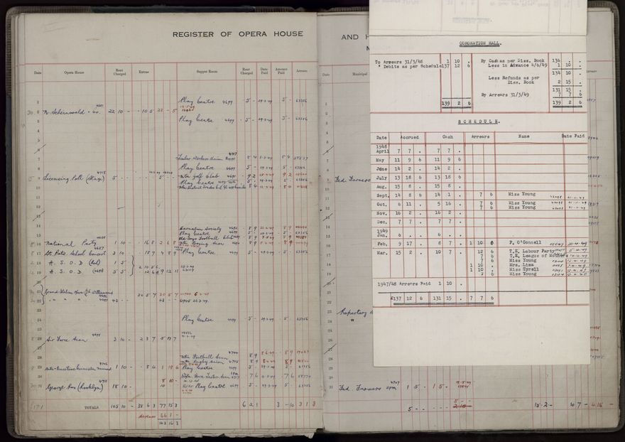 Municipal Opera House and Coronation Hall, Register of Bookings