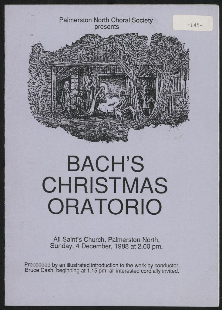 A concert programme from a performance of Bach's Christmas Oratorio by the Palmerston North Choral Society.