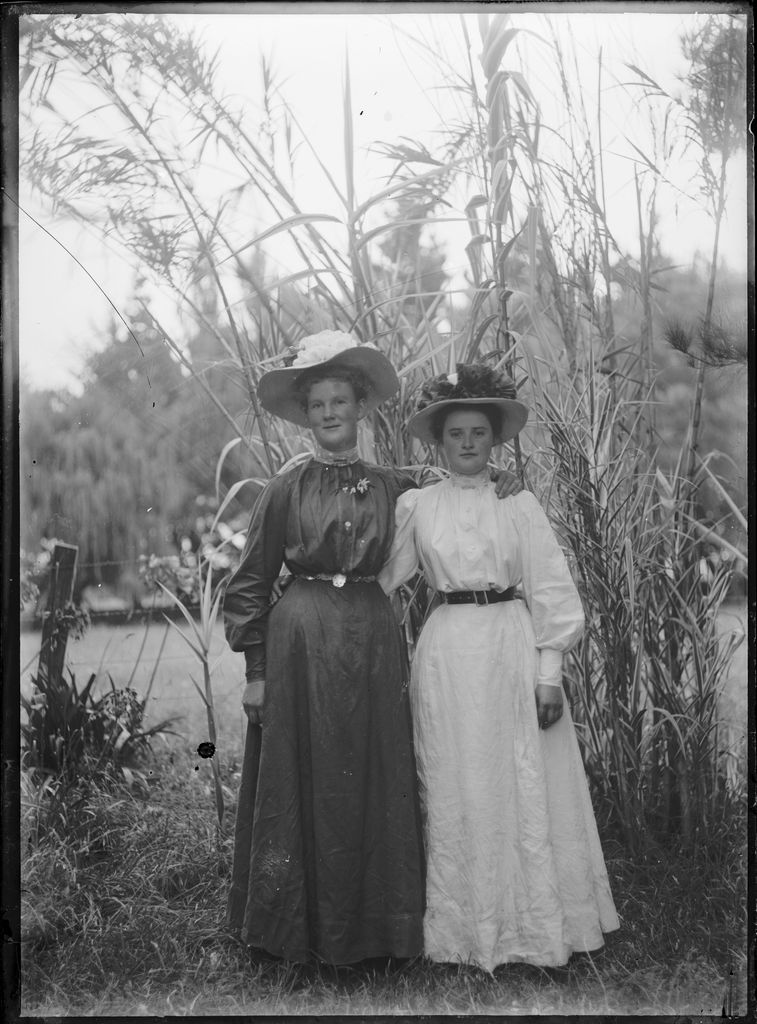 This photograph was created by William James Young in the early 20th century. A large variety of subjects are depicted in the collection, but family, rural life and travel are the most prominent themes. The exact location of the photographs in the Young Collection is unknown, but W J Young lived on a farm in Mt Stewart, Rangitikei, and some of the photographs include his house. The Young family were apparently avid travellers and photographs later in the collection feature scenes from Rotorua, Auckland, Whanganui, as well as other unidentified locations. The portraits are all unidentified, but are presumably of members of the Young family. The photographers parents were George Henry (b 1833) and Jane McDowell (b 1842, d 1916). They came to New Zealand in 1877. The same year, they bought the home farm on Mt Stewart and called it Kilrudden after Kilrudden House, the home of the McDowell family in Ireland. The couple had four children: Ann (b 1873), Margaret (b 1876), John (b 1878) and William James (b 1880). William James married Mary Elizabeth Thompson and they had four children: Doris (b 1914, d 1989), George (b 1916, d 1991), Royden McDowell (b 1925, d 1992) and Noel William (b 1927, d 2013).