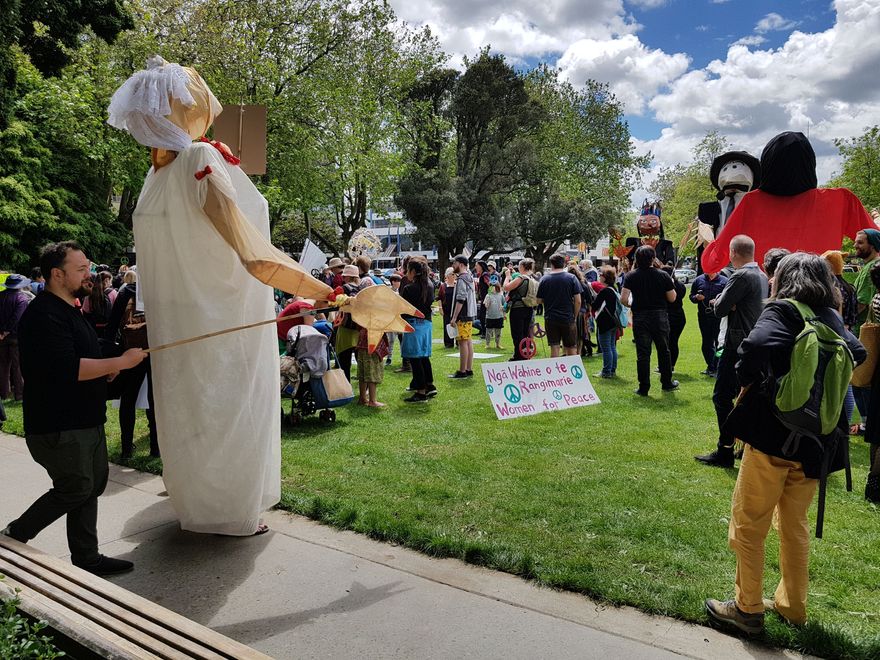 Start of the Peace Action Manawatū Protest in The Square against the New Zealand Defence, Industry & National Security Forum. The forum was held from 31 October to 1 November at Central Energy Trust Arena.