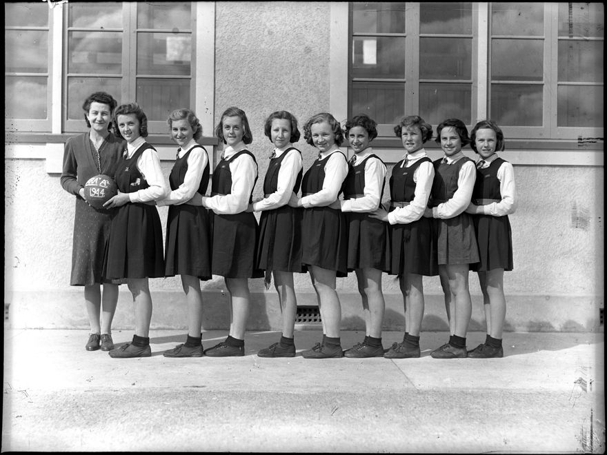The Arataki "A" basketball team. Basketball is now called netball. Palmerston North Intermediate Normal was opened in 1941 in Ferguson Street.