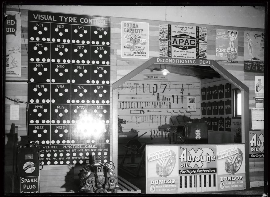 A corner of Child Brothers workshop. Child Bros Ltd, established in Palmerston North 1919, was a carrying firm. It was later called Child Services and operated in Alert Street. Also see 2012G_ELMAR-4_006328.