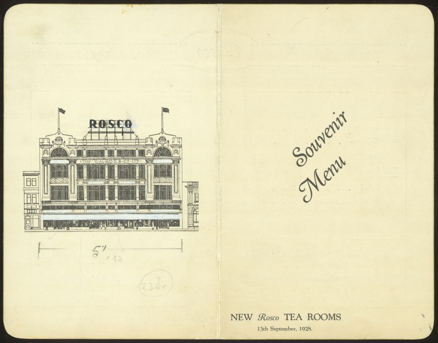Rosco Souvenir Menu, for the opening of the new tearooms