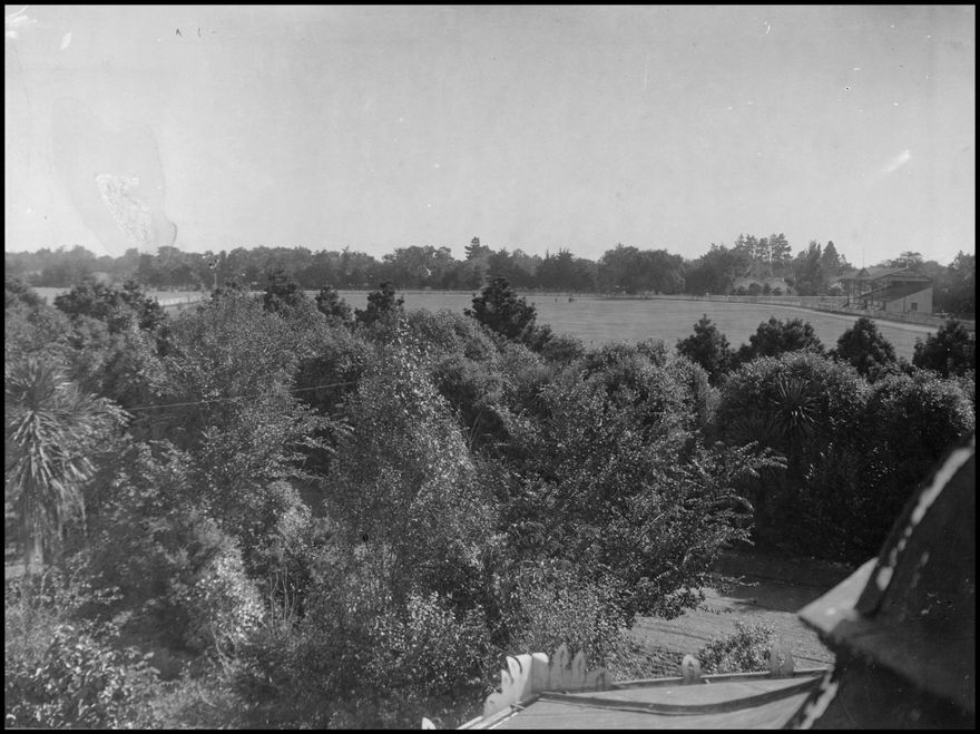The view is taken from the top of the Band Rotunda in the Esplanade. This sportsground was first owned by the Manawatu Sporting Association. It was later bought by the Borough Council.