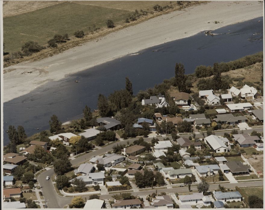 Aerial photograph of houses and properties on and around Centennial Drive.