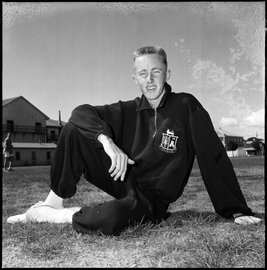 This image was taken for a story that ran in The Manawatu Evening Standard on 09 March 1961 "Running the mile in a time just outside M. Halberg's when he was the same age as B. Jones would give the latter a good prospect for a future career in athletics. Jones, a Palmerston North Boys' High School prefect, ran the mile in 4min. 28.8 sec, lowering the old record from 4min 41 1-5 sec during the school's annual sports this morning."