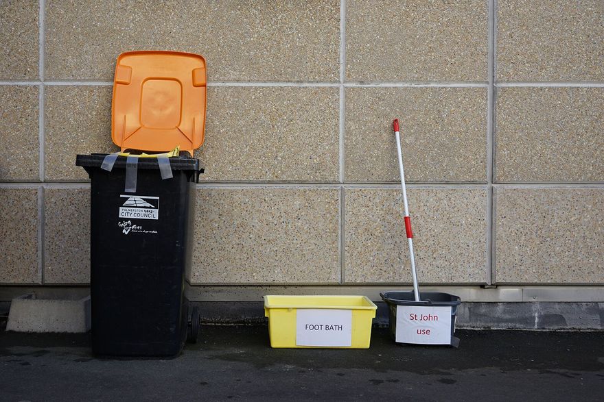 Cleaning station for ambulance drivers.