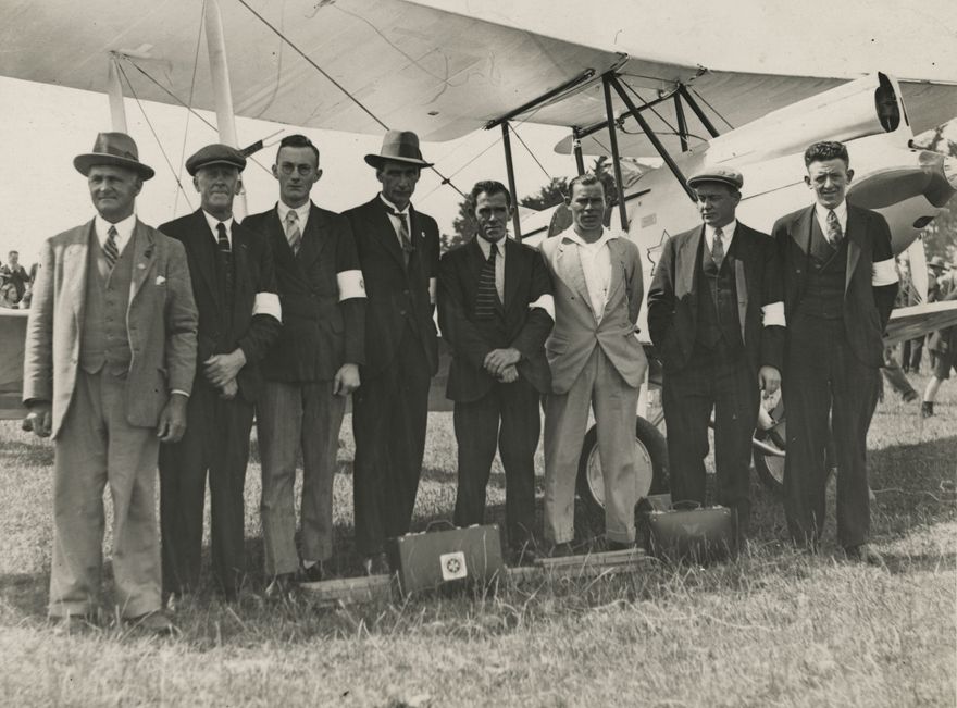 The Palmerston North Ambulance Division attending the opening of Milson Airport. The Ambulance Division was registered in Palmerston North 7 October 1931.