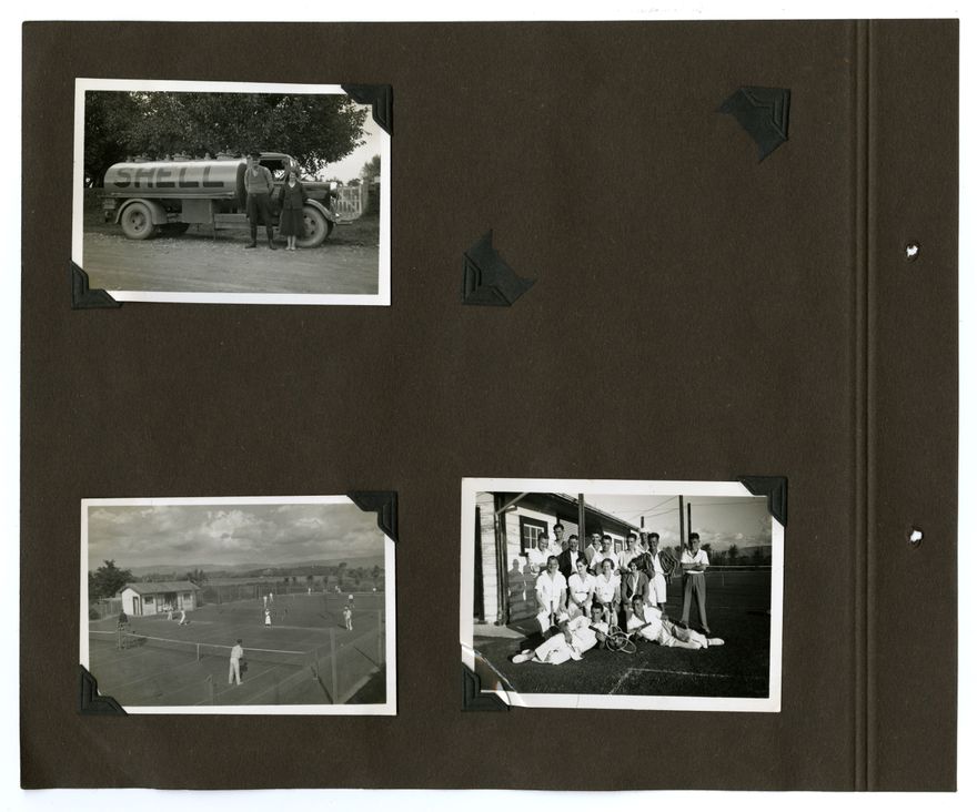 This 1930s photograph album belongs to the Barrow Family, of Palmerston North. Subjects include family members, pets, airplanes, the 1935 flood, cars and car crashes, the Esplanade Gardens and other local landmarks.