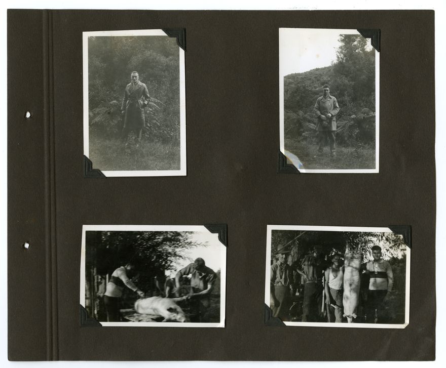 This 1930s photograph album belongs to the Barrow Family, of Palmerston North. Subjects include family members, pets, airplanes, the 1935 flood, cars and car crashes, the Esplanade Gardens and other local landmarks.