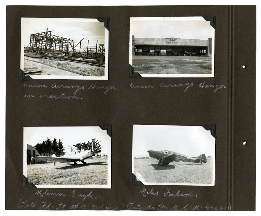 This 1930s photograph album belongs to the Barrow Family, of Palmerston North. Subjects include family members, pets, airplanes, the 1935 flood, cars and car crashes, the Esplanade Gardens and other local landmarks.