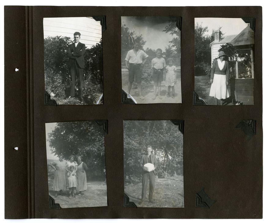 This 1930s photograph album belongs to the Barrow Family, of Palmerston North. Subjects include family members, pets, airplanes, the 1935 flood, cars and car crashes, the Esplanade Gardens and other local landmarks.