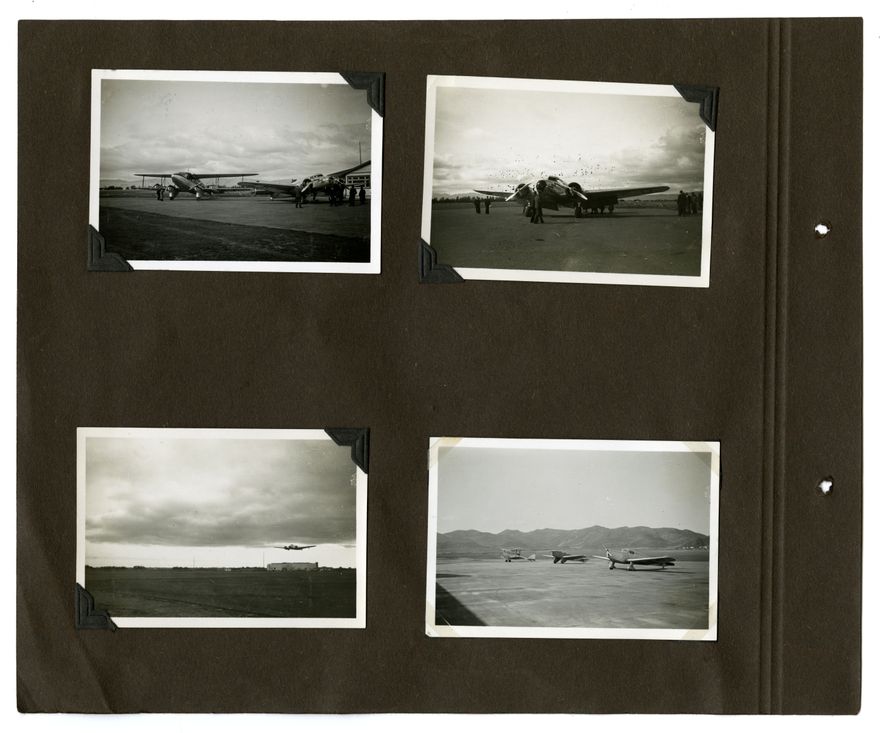 This 1930s photograph album belongs to the Barrow Family, of Palmerston North. Subjects include family members, pets, airplanes, the 1935 flood, cars and car crashes, the Esplanade Gardens and other local landmarks.