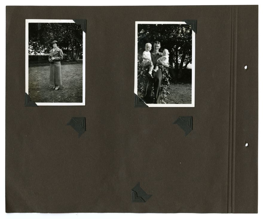 This 1930s photograph album belongs to the Barrow Family, of Palmerston North. Subjects include family members, pets, airplanes, the 1935 flood, cars and car crashes, the Esplanade Gardens and other local landmarks.