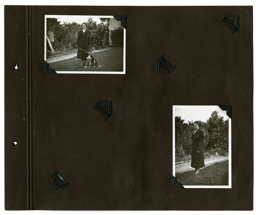 This 1930s photograph album belongs to the Barrow Family, of Palmerston North. Subjects include family members, pets, airplanes, the 1935 flood, cars and car crashes, the Esplanade Gardens and other local landmarks.