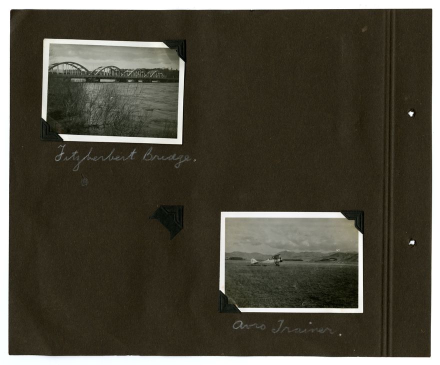 This 1930s photograph album belongs to the Barrow Family, of Palmerston North. Subjects include family members, pets, airplanes, the 1935 flood, cars and car crashes, the Esplanade Gardens and other local landmarks.