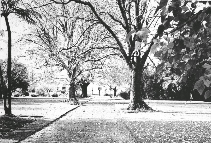 This photograph is taken looking towards Fitzherbert Avenue and the trees lining the path are mainly English Elms. The winding complex of pathways was developed under Peter Black, Curator of Reserves from 1908-1946.