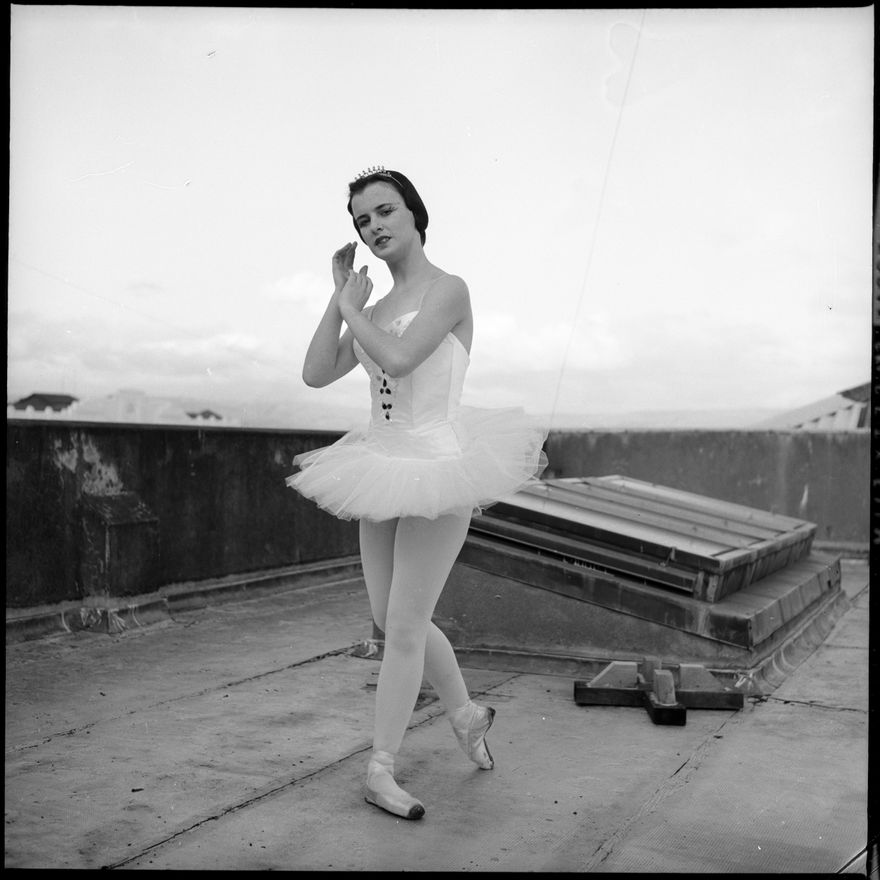 This image was not published in The Manawatu Evening Standard. A ballerina poses for the photographer. Another image of the woman was published 26 June, 1963, naming her as 17 year old ballerina student Sonia Rogers.