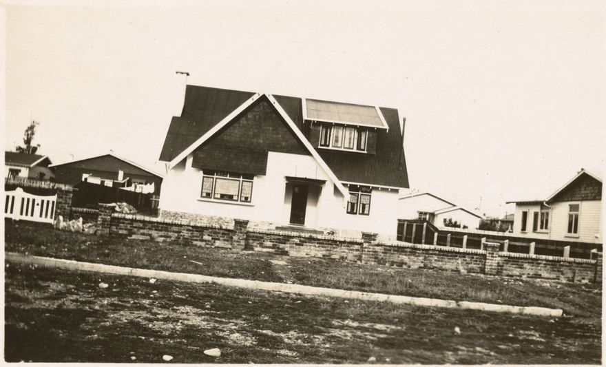 This house was designed by Reginald Thorrold-Jaggard, a local architect, and built for Mr David H Cook, a window dresser of Palmerston North. The roof line was remodelled in the 1930s to include another room upstairs - see 2010N_Bur317_3258.