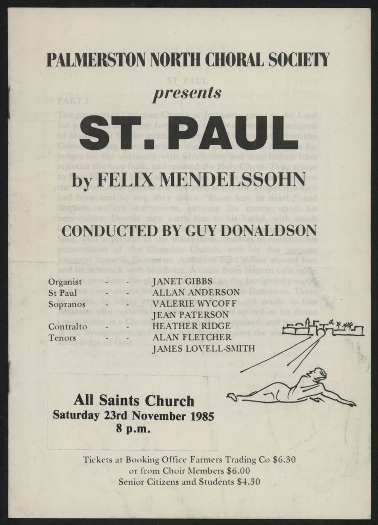 A concert programme from a performance of "St. Paul" by the Palmerston North Choral Society