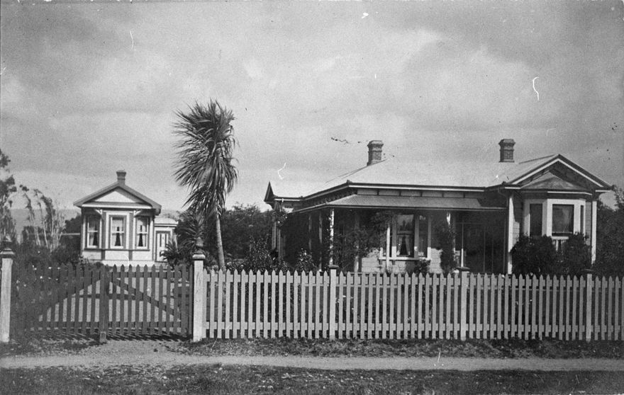 On the right is W H Collingwood’s residence, which was situated next to the Wesleyan Manse on church Street. W H Collingwood was Town Clerk of the Palmerston North Borough Council 1907 - 1917, and was also Treasurer of the first Palmerston North High School Board of Governors. On the same section at left is the house built by W.H. Collingwood for his parents. This was later moved around the corner to Victoria Avenue near Ferguson Street.