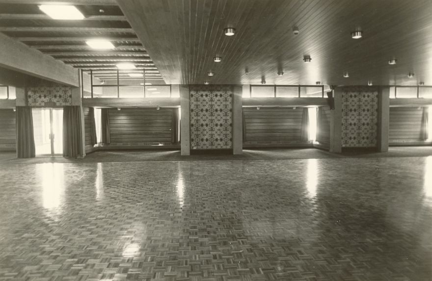 A interior view of the Conference Centre. A large parquet floor, surrounded by red carpet and drapes offsets the ground floor exhibition area. With the upstairs conference area, Palmerston North’s Conference Centre can cater for 1, 000 people in separate conferences.