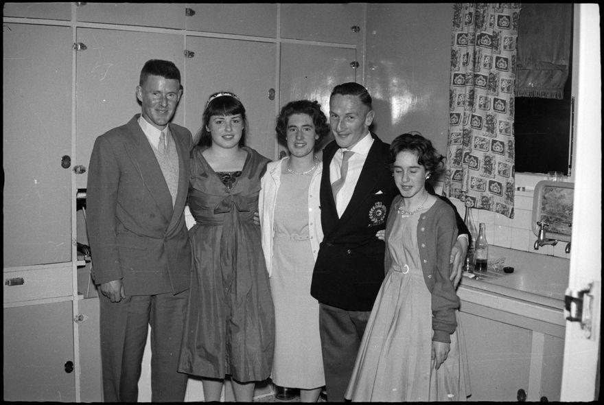 This image was taken for Photorama pictorial magazine’s July 1960 edition but was not published. Featured are the family and friends of “Mr Peter Loader of Wellington and Miss Heather Stone of Palmerston North photographed at a party to celebrate their engagement.”
