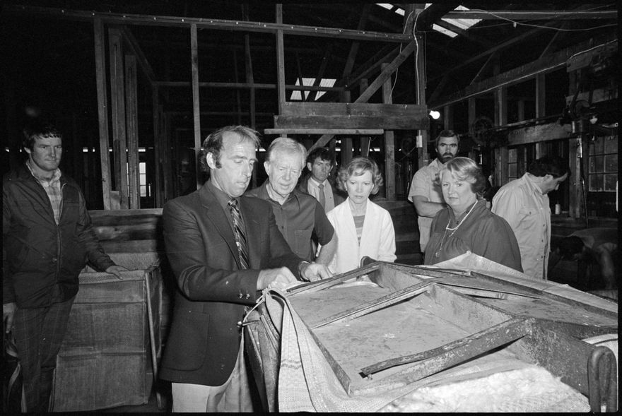 This image was taken by the Evening Standard on the 11th of February 1984 but was not published. It depicts former United States president Jimmy Carter and his wife Rosalynn visiting the hobby-farm of Richard and Barbara Walton at Aokautere.