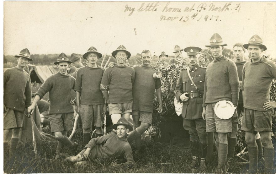 https://d28dhd8eubcyz4.cloudfront.net/iiif/2/curtis-production2-cache%2F1%2F5%2F9%2F3ca3c5-e1e0-4d14-9deb-118f4cc4da2b%2Fresize_master_6e711e4f4a5724a2fa7a381ced76a163.jpg/full/!880,1024/0/default.jpg?sig=202cfdc323a4ac3cc3efd8b164333d9f1eabab56&ver=1655541321"My little home at P. North!" - Soldiers in Camp