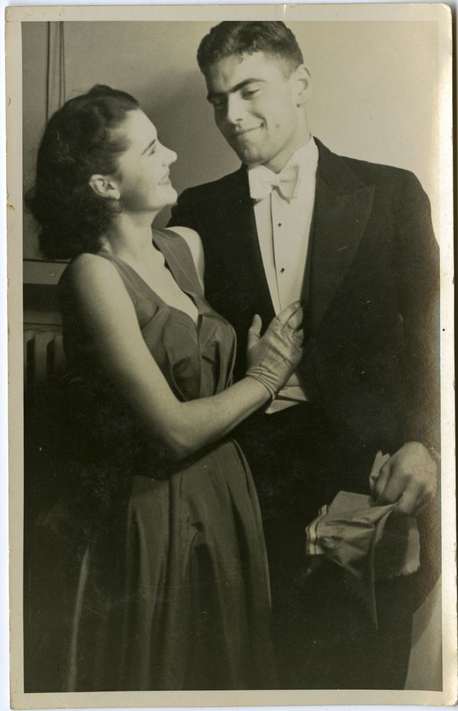 Joan Klee and partner dressed up for the Massey College Capping Ball. Massey Agricultural College was opened in 1928, and was the forerunner of Massey University. Joan Klee married Kenneth Lindsay McDonald.