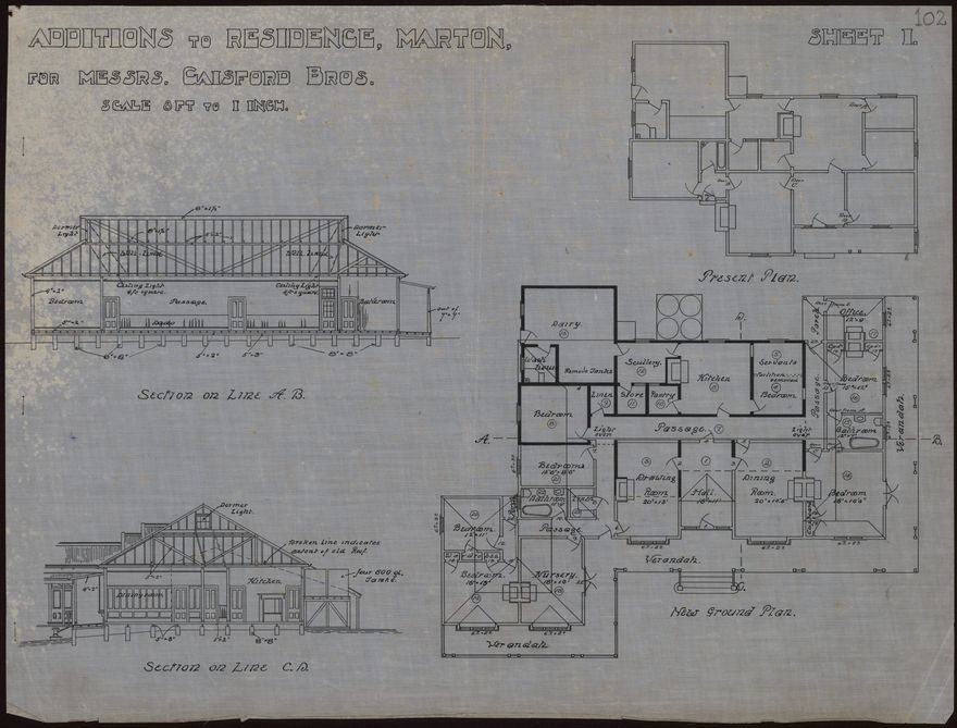 These plans for extensive additions to house was designed by L. G. West for Messrs Gaisford Brothers. The Danish-born architect Ludolph Georg West (1846-1919) established an architectural practice in Palmerston North in about 1880. In 1912 he formed a partnership with is son, Ernest Vilhem West, who continued the business after his father's death.